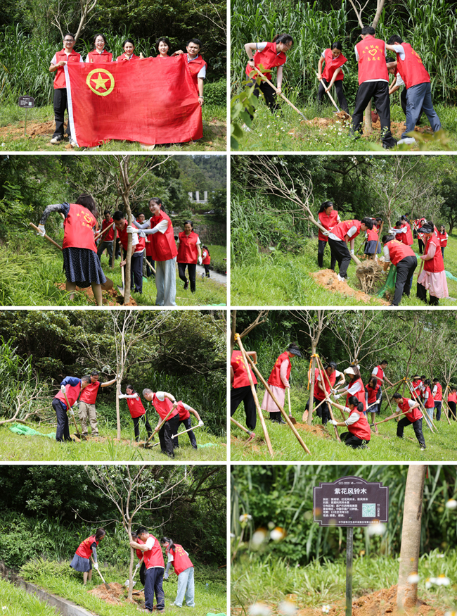 活動(dòng)現(xiàn)場(chǎng),大家在工作人員的指引下進(jìn)行分組,并來到各自負(fù)責(zé)的區(qū)域開始植樹。參與人員干勁滿滿、默契十足、分工協(xié)作,有的揮鍬培土,有的取水澆灌,現(xiàn)場(chǎng)全是一片忙碌的身影。在大家的共同努力和見證下,紫花風(fēng)鈴木等樹苗穩(wěn)穩(wěn)地扎根土壤,展現(xiàn)出勃勃生機(jī),為深圳市大鵬新區(qū)再添一抹新綠。