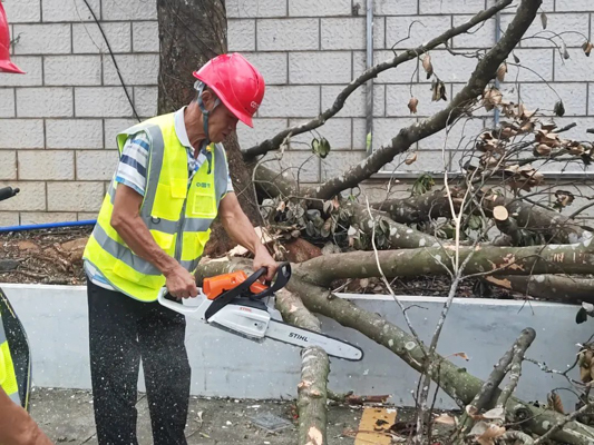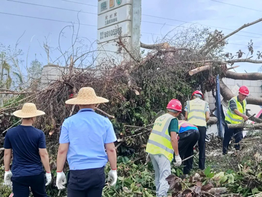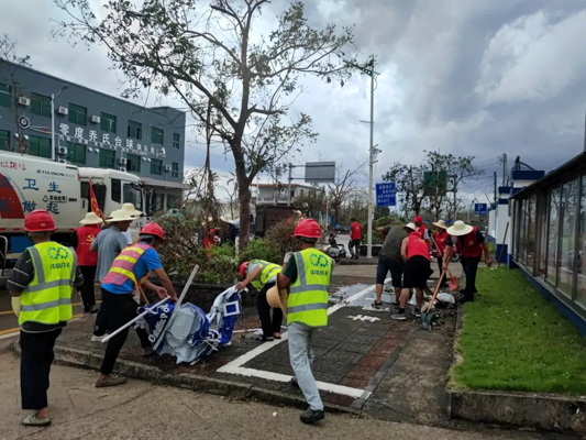 新坡鎮(zhèn)救災現(xiàn)場,中節(jié)能鐵漢小分隊根據(jù)當?shù)卣块T統(tǒng)一部署,在分配區(qū)域全速搶通阻斷路段,爭分奪秒對倒伏樹木進行分解清理,并及時清理道路垃圾,開展衛(wèi)生整治工作。