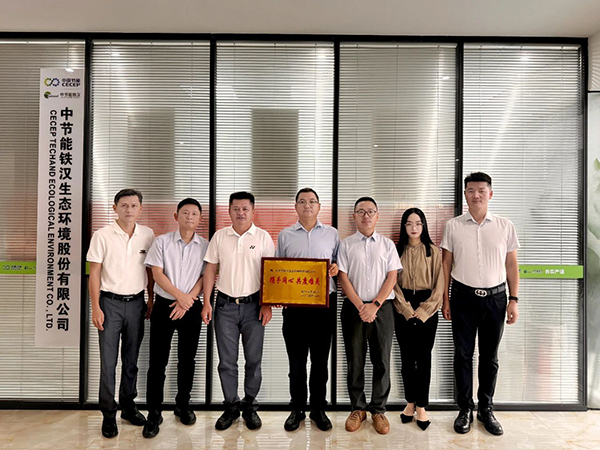 ▲??谑忻裾贮h組成員、副局長馮柳(左三)為中節(jié)能鐵漢授牌