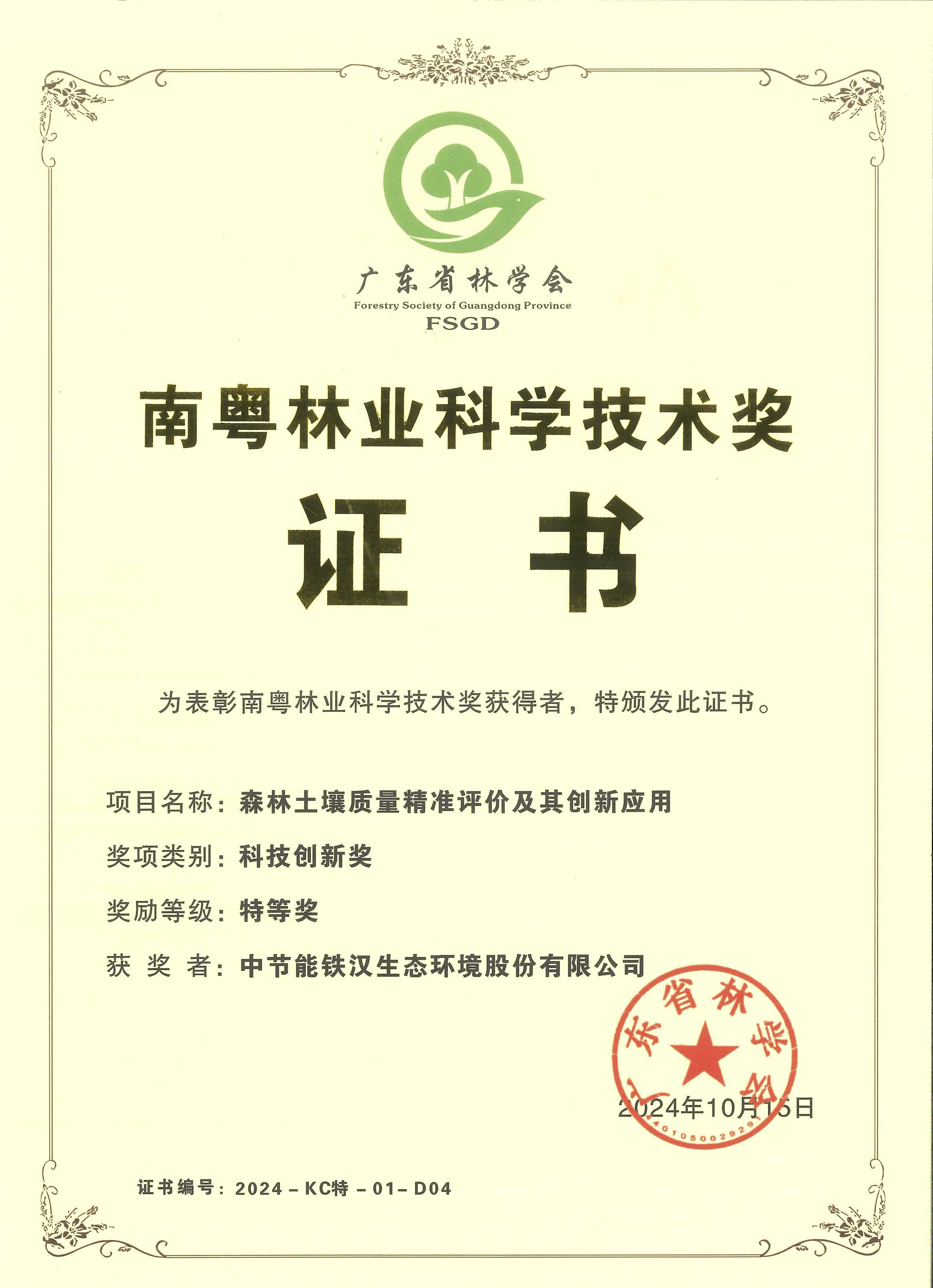 喜報(bào)|中節(jié)能鐵漢一項(xiàng)目獲第六屆南粵林業(yè)科學(xué)技術(shù)獎(jiǎng)科技創(chuàng)新類“特等獎(jiǎng)”