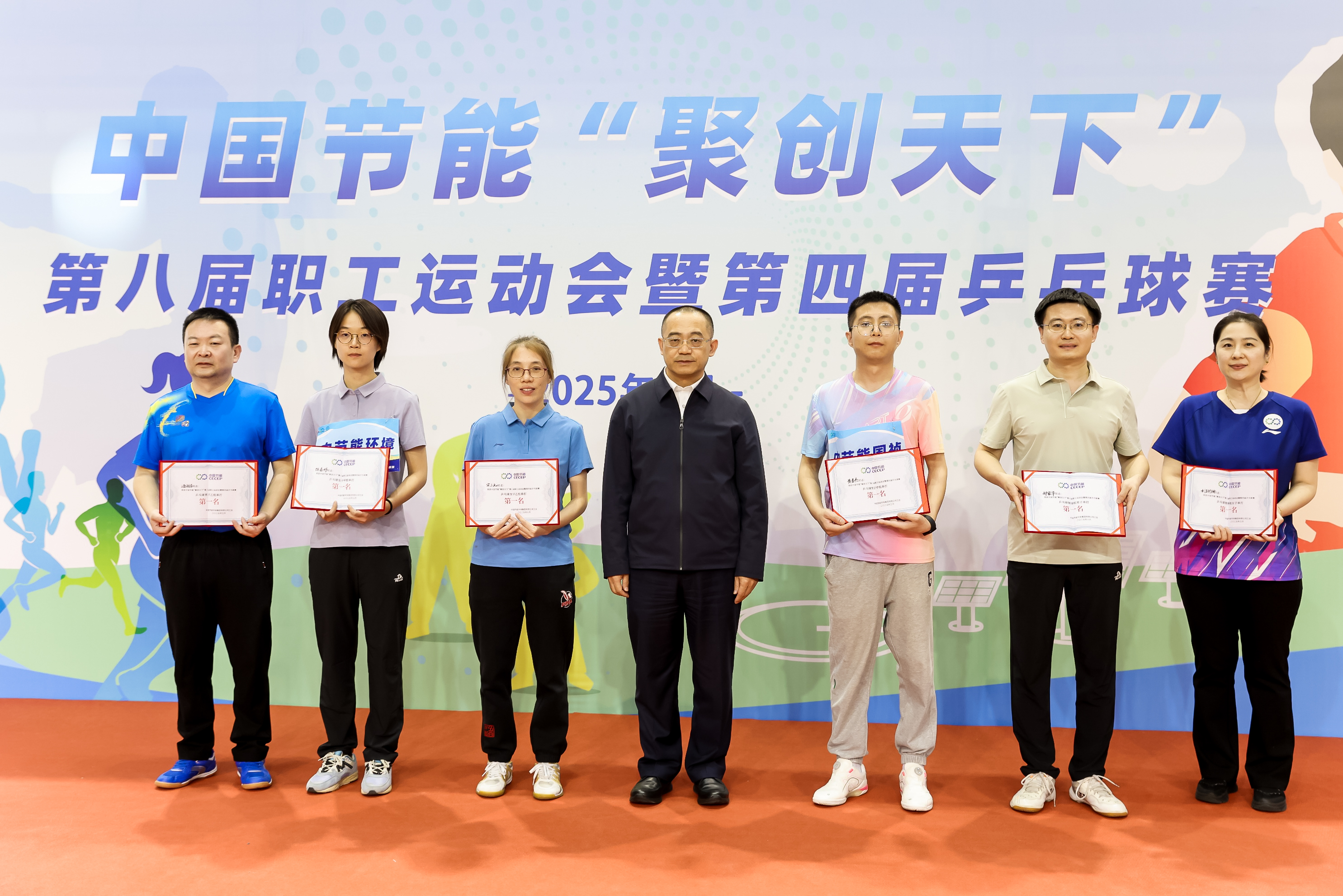 經(jīng)過一天的激烈角逐,運動會勝利閉幕。集團公司黨委常委、副總經(jīng)理胡乃民,黨委常委、紀委書記楊峰,工會主席、職工董事朱珉為獲獎運動員和集體頒獎。中節(jié)能鐵漢代表隊最終取得乒乓球女子乙組單打第一名、廣播操第七名、乒乓球男子乙組單打前八名等佳績。