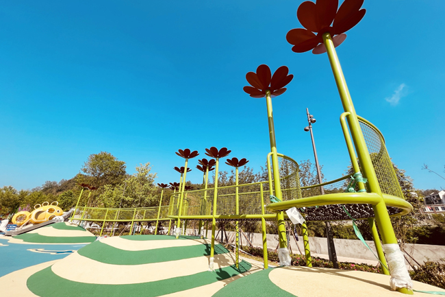 近日,項(xiàng)目部大力推進(jìn)兒童樂園區(qū)域建設(shè),完成了熊貓滑梯、手型爬網(wǎng)、雪山鋼結(jié)構(gòu)、游泳池、荷花爬網(wǎng)等節(jié)點(diǎn),在春日櫻花的浪漫氛圍中,五彩斑斕的兒童樂園已初見規(guī)模。此外,項(xiàng)目部重點(diǎn)攻堅(jiān)體育公園LED三面屏、草帽鋼結(jié)構(gòu)、體育商業(yè)建筑等主要施工內(nèi)容均順利完成,為如期交付打下堅(jiān)實(shí)基礎(chǔ)。