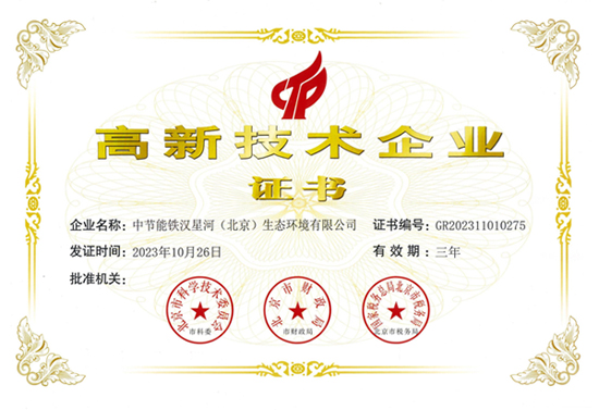 近日,中節(jié)能鐵漢所屬鐵漢星河收到北京市科學技術(shù)委員會、北京市財政局、國家稅務總局北京市稅務局聯(lián)合頒發(fā)的《高新技術(shù)企業(yè)證書》,這是鐵漢星河自2014年以來,第四次獲得該證書。