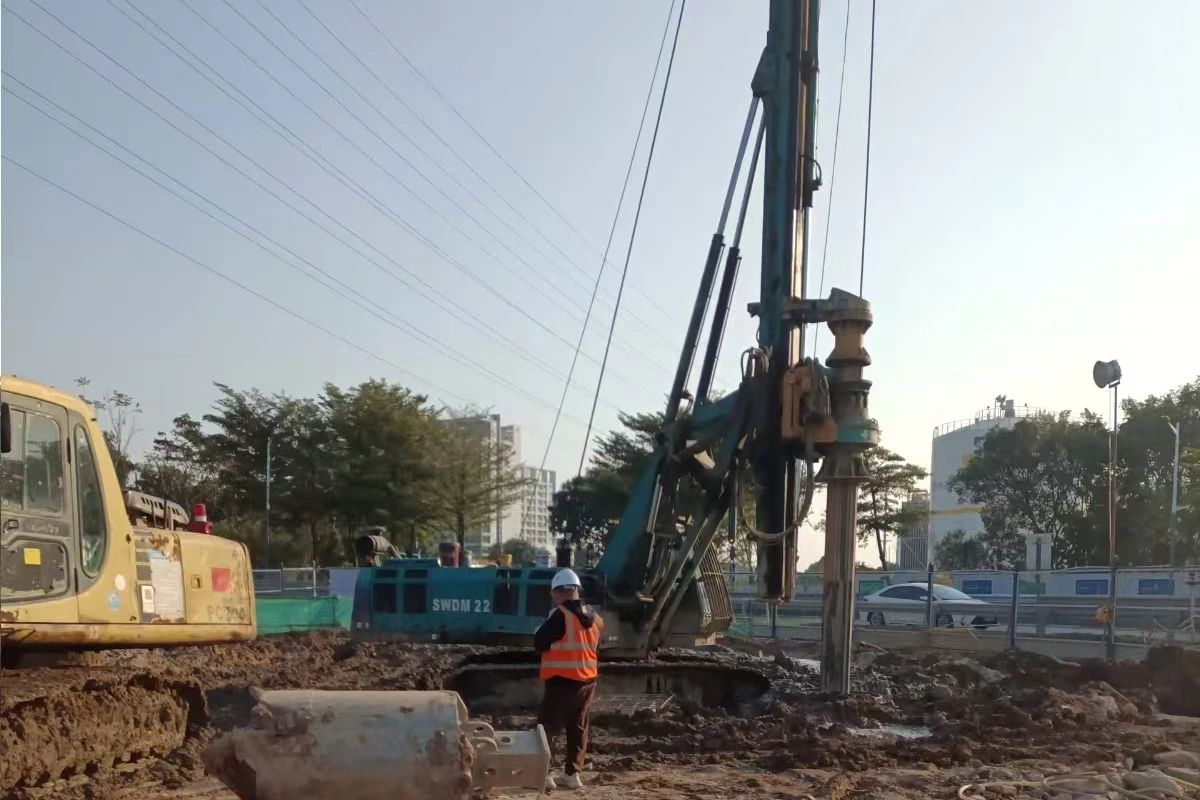 項目位于深圳市寶安區(qū),工程內(nèi)容涵蓋拆除工程、泵站配套管網(wǎng)工程、泵站工程、金屬結(jié)構(gòu)工程、機電工程、綠化工程、管線遷改等。目前,現(xiàn)場苗木已遷移完,舊泵站井室砼破除、P-5頂管井、P-3井、WS-5.6井高壓旋噴樁等工作已完成,正在推進新泵站施工區(qū)域P-1~P-3段灌注樁施工。